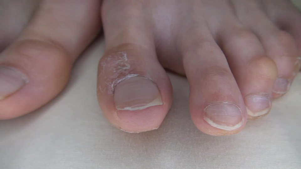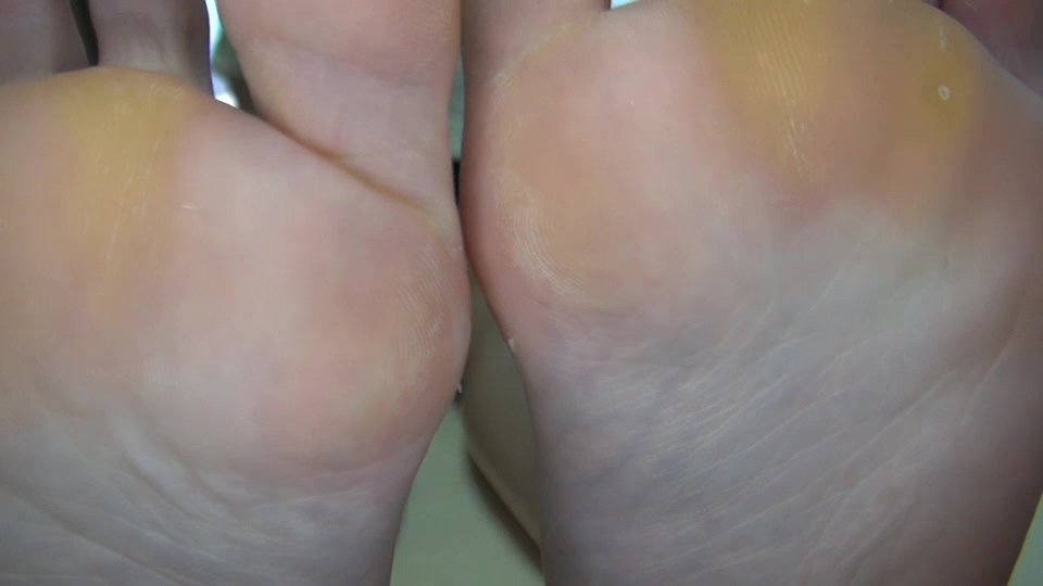 大きくて黄色いヒールだこ、小指下の魚の目、かかとのかさつき具合…